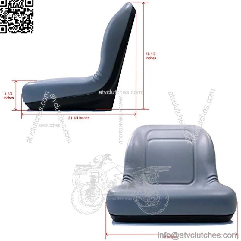 Features – Heavy-duty vinyl covering. Vacuum formed waterproof vinyl. Ergonomic cushions to ensure operator comfort. Durable blow molded plastic frame is corrosion resistant. Central drain hole prevents water build-up. 19″ high-back seat which will replace both original 16″ and 19″ high-back seats. Multiple mounting patterns