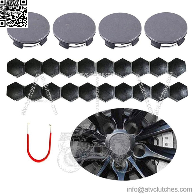 4pcs Center Wheel Caps Set with Logo +20pcs Black Lug Nut Covers + 1PC Installation Tools.