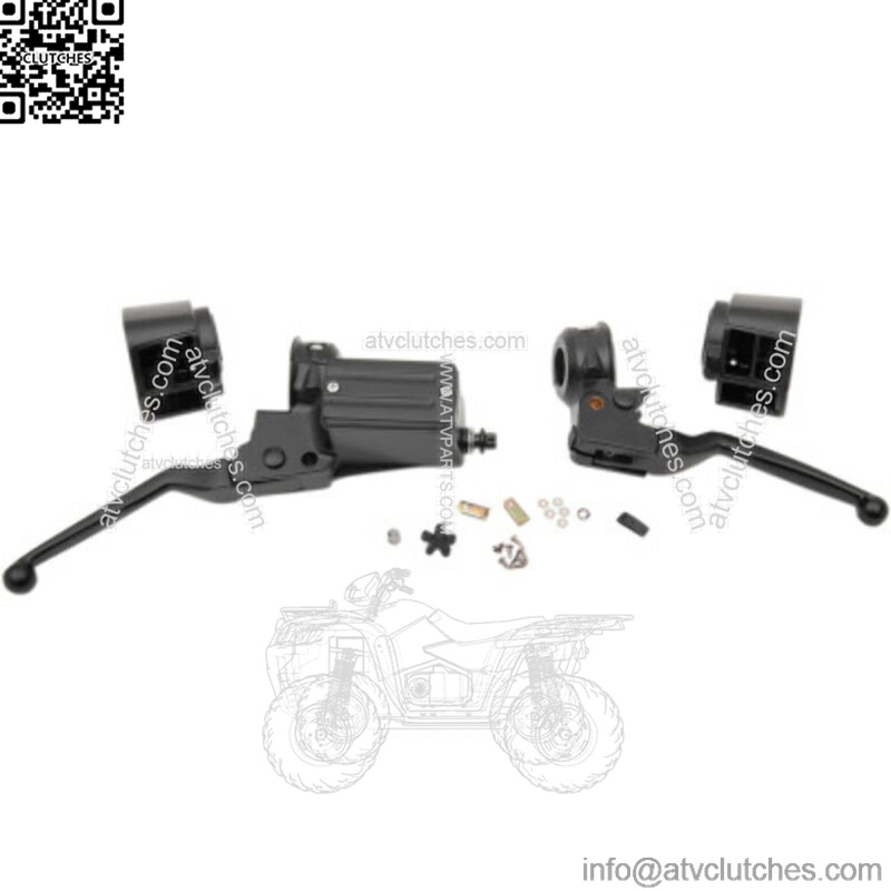 Black handlebar control kit, 11/16″ dual disc, includes master cylinder, clutch handle with clamp and two pairs of switch housings.