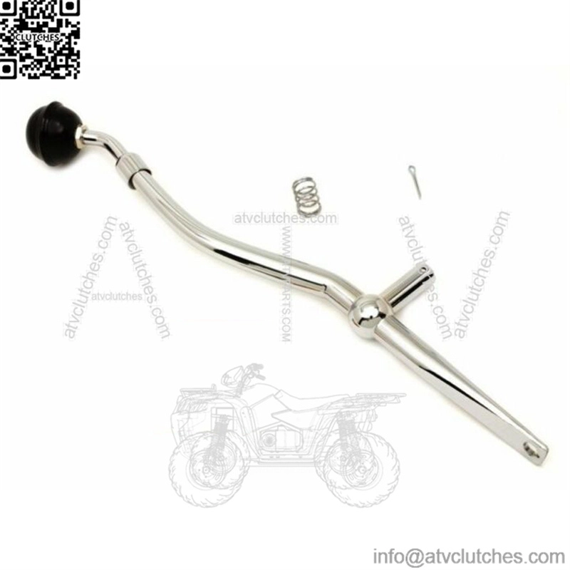 Chrome plated steel tubular style hand shifter lever includes cup, original style black ball, spring and cotter pin. Ball is threaded 3/8″ x 24.