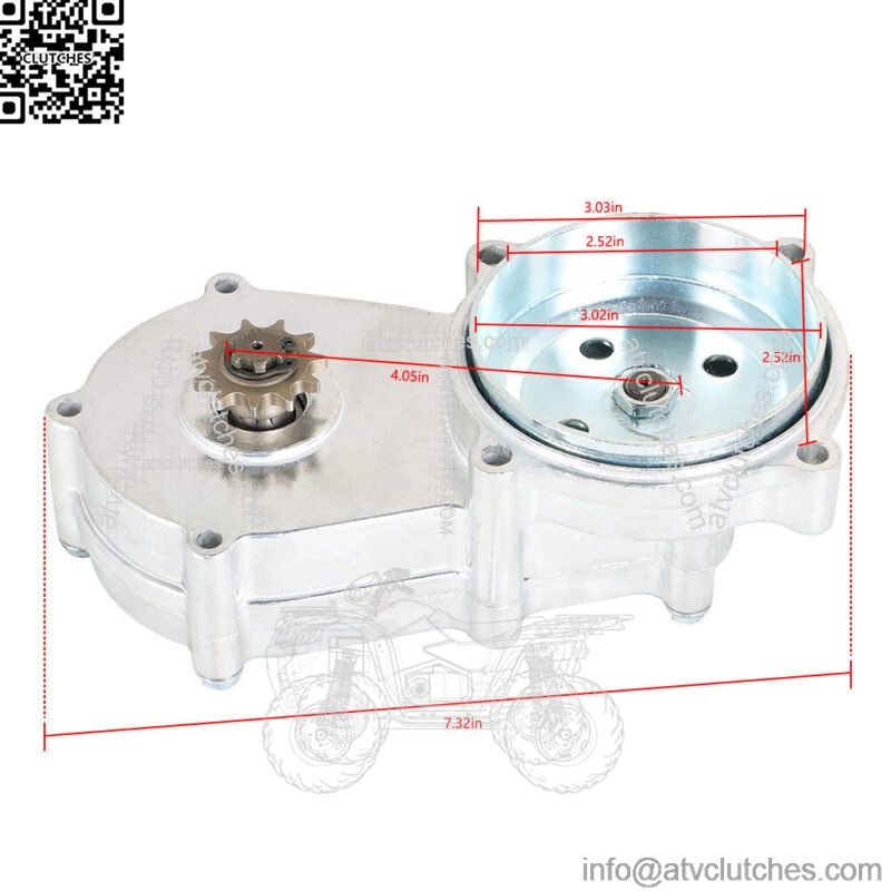Heavy duty reduction box twin-chain design for bigger torque transmission than standard reduction box with single chains. The reduction box comes with clutch(the bore on the clutch:1/2 inch=12.7mm) and 11/13/14/17/20 teeth total 5 pcs of sprockets.The sprocket fits T8F chain(8 pitch) only. Reduction Ratio: 3 to 1 chain reducer. Please confirm size of your original part. This is 91mm, not 116mm. Fit for 47/49cc 2-stroke Pocket Mini Bike / Scooter / ATV.