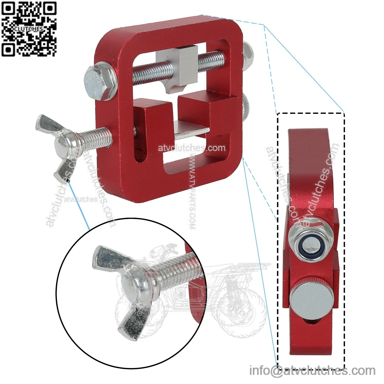 The adjustable side and top clamps secure the slide in place, side witness windows on both sides of the tool frame to check for the proper sight and pusher block alignment.